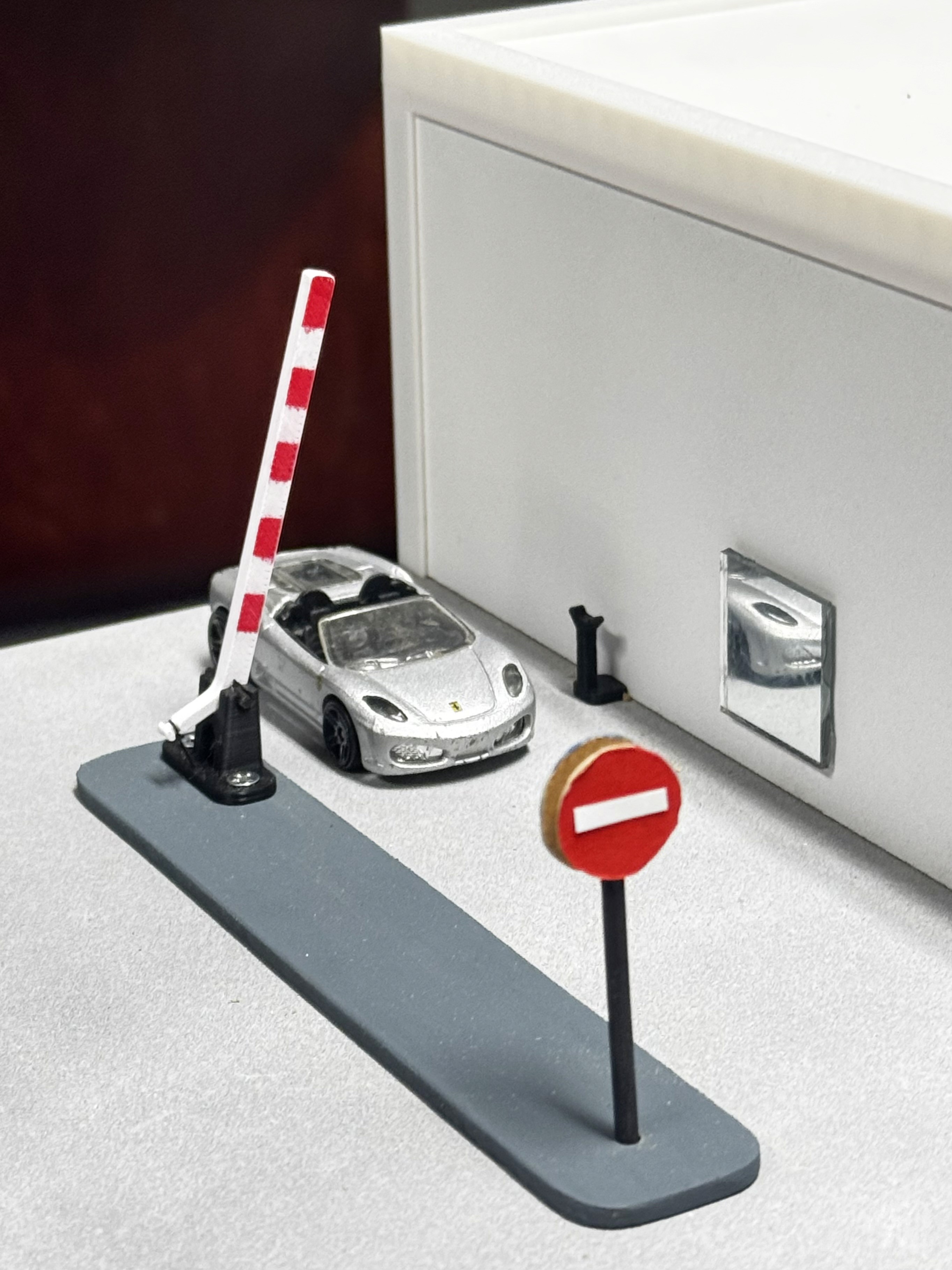 Das Ergebnis ist ein physischer Prototyp eines Bürgeramt-Drive-Through-Systems. Das Modell zeigt eine mögliche räumliche und technische Umsetzung mit Zufahrt, Schranke, Servicefenster und Abfahrtsbereich. Der Ablauf sieht vor, dass Bürger einen Online-Termin buchen, das Fahrzeug vor Ort über Kennzeichenerkennung verifiziert wird und eine servogesteuerte Schranke bei gültigem Zeitfenster öffnet. Dadurch können kurze Anliegen effizienter abgewickelt und Parkplatzflächen sowie angrenzende Wohngebiete entlastet werden. Das Projekt hat gezeigt, wie Service Design, räumliche Planung und technische Prototypisierung zu einem alltagsnahen Systemkonzept verbunden werden können.